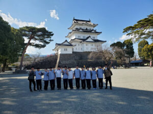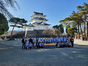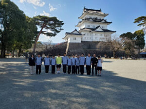 畑宿地区での寄木細工つくり体験は細かな木のピースを、自分の思うような模様に組み合わせていきます。デザインをどうするか始めは苦心していましたが、各自が大満足な寄木細工を完成させられました。また、そのあとは小田原城を見学。日本で7番目に高い天守閣からは、遠く相模湾まで見渡せました。