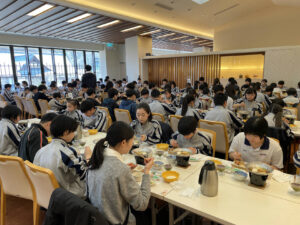 1日目の今日は順調に進んでいます! 5月に清里で行った宿泊での研修を経て、今回は中学校生活の中でA~E組が混合の部屋で宿泊する初めての機会です。