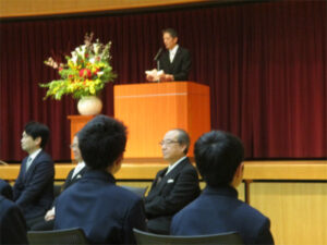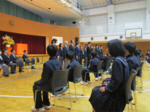 春の暖かな日差しの下、桜も満開となった本日、第42期生の入学式が行われました。新入生91名は担任の先生に名前を呼ばれると元気よく返事をし、中学生としての第一歩を踏み出しました。また在校生を代表して、友愛会(生徒会)総務委員から挨拶があり、明日からの全校生徒揃っての学校生活を歓迎しています。