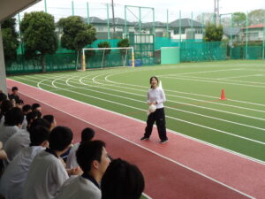 本日の体験学習は3年生になって初めてのレクリエーションを行いました。校庭で整列練習と3クラス縦横を揃えてのジョギングを行ったあとに、今年度の担任の先生とお互いに自己紹介を行いました。先生や友達の好きな食べ物や、得意な事なども聞くことができ、これからの話題のきっかけになることと思います。次回の体験も皆楽しみにしている様子でした。