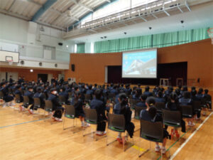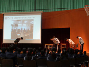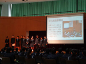 始業式・入学式を終え、全校生徒そろっての新年度が始まった本日、友愛会主催の「新入生顔合わせ会」が行われました。総務委員を中心に各委員会が協力して準備を進め、この日を迎えています。花のアーチで新入生を歓迎し、席に着いたら「ガイダンスブック」を配布。寸劇やクイズを交えながら1日の流れを説明したり、学校行事や委員会の紹介をしたりしました。1年生もスライドを興味深そうに見ながら、先輩たちの説明をしっかりと聞いていました。これから武蔵野東中学校の生徒として主体的に行動し、楽しく充実した学校生活を送って欲しいと思っています!
