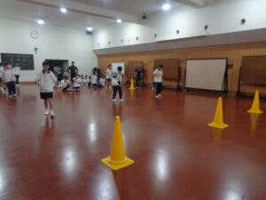 「体験」の授業でレクリエーションを行いました。ねらいは、クラスの和を高めること、楽しむ時と指示を聞く時の切り換えを意識すること、ルールを守って競技をし、勝っても負けても気持ちよく終わることです。今回はクラス対抗でスリーヒントクイズやピンポン玉を使ったリレー、椅子取りゲームを楽しみました。ピンポン玉のリレーではリーダーが走順を決めたり友だちのサポートをしたりなど自分たちで考えて取り組めたことは1年生のときから比べて成長した面です。