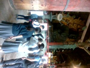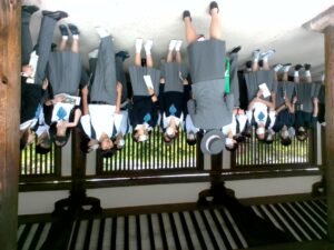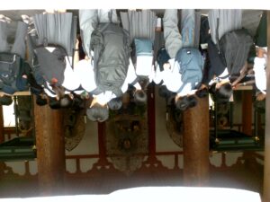 興福寺の国宝館では、国宝中の国宝である阿修羅像や閻魔大王の化身である地蔵菩薩が見られ、展示物が撮影禁止の中、生徒はしっかりと目に焼き付けて国宝館をあとにしました。他にも展示物の中には五部浄像などといった迫力のある展示品が数多くありました。東大寺の大仏殿には迫力のある毘盧遮那仏を中心に広目天、多聞天などの仏像がありました。東大寺の柱には人一人分が通れるような穴があり、私も含め生徒の一部は穴を通っていました。(Kくん)