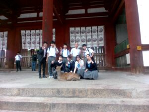 今日は、法隆寺,興福寺,東大寺,奈良公園に行ってきました。法隆寺では、五重塔の細かな装飾や釘を一切使わない建築方法、建築材料に使われたヒノキの香りを実感しました。法隆寺は世界で最も古い木材建築であり、それは建物の建築方法に秘密がありました。例として、柱の下に石を置き地面からの湿気が木に伝わることを防ぎ腐敗しづらくしています。また、ヒノキはよく建築に使用されますが、その理由はヒノキには樹皮が多く含まれており虫よけの効果があるからだそうです。(Fさん)