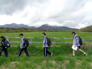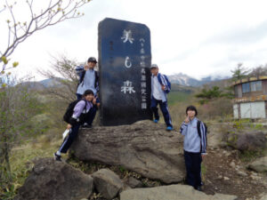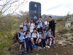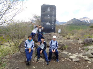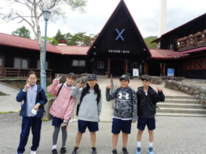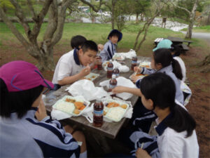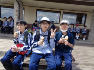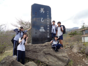 清里山荘合宿2日目は、朝から晴天に恵まれました。AB組は班ごとに協力してクイズを解きながらのオリエンテーリング、CDE組はハイキングを行いました。美しの森の展望台につながる遊歩道は修繕工事が完了していて、大変歩きやすくなっていました。頂上からの眺めは、この合宿の良い思い出となったことでしょう。清泉寮でお昼ご飯を食べた後は、待望のソフトクリーム。普段は食べないと話していた生徒も、ここのソフトクリームはおいしかった!と笑顔を見せてくれました。さらに、高原の風を感じながら、足湯につかる生徒たちの姿も見られました。楽しい思い出が詰まった一日となりました。