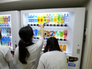 校内に飲料、軽食の自動販売機が設置されました。暑い夏の水分補給や部活動前のエネルギー補給として活用していければと思います。種類も豊富なので生徒たちも楽しみながら選んでいます!