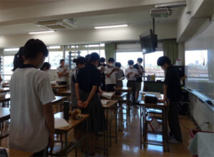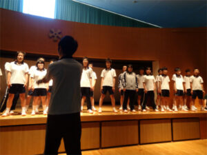 熱く燃えた球技大会が終わり、7月に行われる合唱コンクールに向けての練習が本格的にスタートし、朝や帰りのHRの時間に教室から歌声が響いています。3年生は学年曲「花は咲く」と、各クラスで決めた自由曲を歌います。中学校生活最後の合唱コンクール、これまでの経験を活かして練習に臨み、最上級生らしい合唱に仕上げていきます。