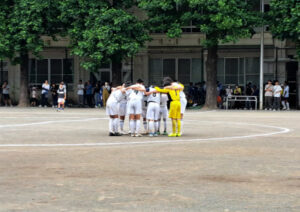 3年生の最後の大会となる中体連夏季支部大会に小金井緑中との合同チームで出場しています。5チームで争う予選リーグを2勝2敗の3位で突破し決勝トーナメントへ。同点でのPK戦など接戦をものにしながら、トーナメント3回戦を突破し、都大会出場が決まりました。サッカー部の都大会出場は、創部以来初めてとなります。