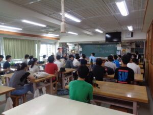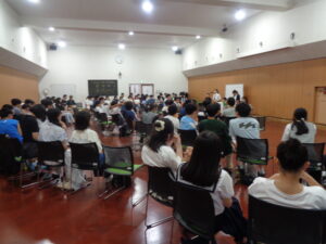 本日は3月に卒業した第39期生のホームカミングデイです。前半は昨年使用していた3階の教室でクラス会を行い、互いの近況を報告し合いました。後半はアミティエホールにて学年会。7月7日七夕のホームカミングデイということで「七夕東くじ」を楽しみました。抽選で名前を呼ばれた順に「高校で頑張っていること」等を発表し、それぞれ頑張っていることを分かち合い、再会の時を楽しみました。毎日通っていた校舎が小さく感じるほど、すっかり高校生活に慣れた様子の39期生。久しぶりに再会し、皆で笑い合った時間は、明日からの生活の活力になったことと思います。また成長した姿を見せに来てください。皆さんの更なる活躍を期待しています。