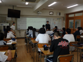 今回2年生では「語順の大切さ」をテーマにしてコラボ授業を行いました。日本語では語順を入れかえることで、文の意味を変えることなく異なる表現ができるのに対して、英語では5つの文型によって文が表現されていることを学びました。日本語の柔軟さに気付いたところで次のような例文を示し、書き手の伝えたい場面を探る活動を行いました。