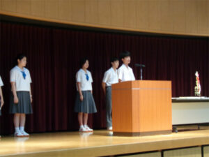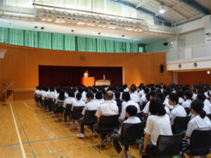 2学期がスタートしました。皆元気に登校し、それぞれの教室では久しぶりに会う友だちや先生との話に花が咲いていました。始業式では、校長先生からの話を聞き、今学期の学校行事の成功やそれぞれの目標達成に向けて気持ちを新たにしている様子でした。また夏休み中の部活の活動内容について部長から報告がされるとともに、大会での入賞や検定の合格の表彰が行われました。この夏の頑張りは2学期の成果につながっていくことと思います。