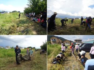 午後は畑にてマルチシートの除去作業を行いました。熱い中でしたが適宜交替で休憩と水分補給を行いながら、それぞれの役割を一生懸命に取り組み、シートをすっかり取り外すことが出来ました。これらの経験が日々の生活にも生かせることを期待しています。