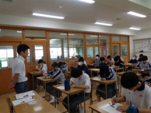 今回は、「死生観」をテーマにした学習の2回目です。東日本大震災で被災した生徒が多くいる中学校の、映像資料の後半を視聴しました。震災で大切な人を失った悲しみや、心にしまっていた苦しみを作文に書き、伝え合う授業。その最後にはまとめとして、生徒一人ひとりが「命とは何か」について作文し、発表しています。映像資料に出てくる生徒の思いを聞きながら、自分の視点で「命とは何か」を考える時間になりました。以下は生徒の感想です。