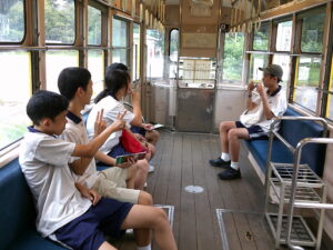 生徒たちはさまざまな時代の建物を間近に見ながら、当時の人々の暮らしや文化に思いを馳せていました。特に、有名なアニメ映画の舞台となった建物を見つけた時には、歓声が上がり、友達同士で楽しそうに確認し合うシーンも見られました。実際に目の前で見ることで、内容がより具体的に感じられ、興味が一層深まったようです。