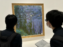 印象派を代表する画家のひとりであるクロード・モネ(1840-1926)の絵画を間近で観ることで、流れるような筆づかいによって生まれるタッチや、絵の具の質感なども観て取ることができ、作品から発せられる魅力を体感している様子でした。