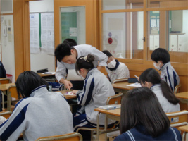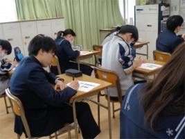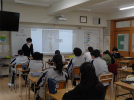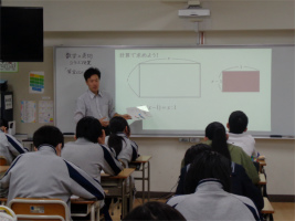 本校では、教科横断型授業(コラボ授業)を取り入れ、幅広い視野での学びをすすめています。今回は3年生で「黄金比と白銀比」をテーマに、数学と美術のコラボ授業を行いました。それぞれの比がどのような長方形から導かれるのか計算して理解した後、これらの比が美術作品の中でどのように活用されているのかを何点か実例をもとに学習しました。古代の建築物から現代のキャラクターデザインまで幅広い様々な例をみる中で、「こんなところにも使われているのか」と驚きの表情が見られ、視野が広がる良い機会となりました。