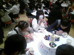バスの中では車窓から見える東京・横浜の街並みを楽しみながら、カップヌードルミュージアムに向かい、マイカップヌードル作りを体験しました。オリジナルのデザインとお好みの具材で、各々こだわりのカップヌードルを完成させました。また、カップヌードルの歴史がわかる映像や展示が面白かったという感想も多くありました。