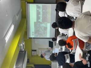 1年CDE組の3クラス合同で、スクールツアーを実施しました。パレットルームに集合し、これから選択する授業の「技能」や委員会活動について話を聞きました。初めて聞く内容も多く、真剣な表情で話に耳を傾けていました。その後、司書の先生から図書室の利用方法について説明を受け、クラスごとに見学。自分の好きなジャンルを探し、「今度これ借りたいな」と声を弾ませていました。昼休みには、「図書室に行ってきま〜す!」と元気な声が響き、さっそく利用する姿も。校庭で体を動かしたり、教室で友だちと過ごしたり、それぞれが自分に合った過ごし方を見つけて、のびのびとした時間を過ごしています。新しい環境に少しずつ慣れながら、学校生活をスタートしています。