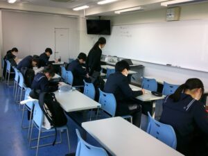 グループが決定し,今日からいよいよ特別進学学習が始動しました。それぞれ専門の先生が担当するため,各個人に合ったレベルの授業で,積極的に質問する様子が見られました。これから1月までの長丁場になりますが,今日の新鮮な気持ちを忘れず受験に臨んでもらいたいと思います。