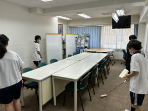 本校では朝のHR後、10分間の清掃から一日がスタートします。清掃班はA~E組の混合班で行っています。初日の本日は顔合わせを行い、リーダー決めや清掃用具の場所、使い方などの確認を行いました。毎朝10分間、協力して校内の美化に努めることで交流を深めていってほしいと思います。
