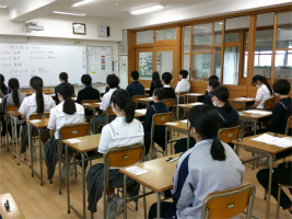 3年生AB組は高校入試を見据えて、おおよそ月に1回の頻度で校内模擬試験を実施しています。今回はその第1回目で、少し緊張した面持ちで各教科の問題に取り組みました。受験生としての意気込みや自覚をそれぞれが感じているのだと思います。ひとつずつ模擬試験を受けていくことで自信を身につけて受験本番に向かってほしいと願っています。