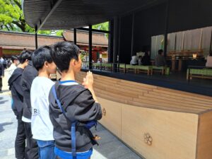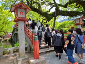 3泊4日の長崎修学学習もいよいろ最終日。朝起きて外を見ると、昨日の雨も上がり一安心です。3日間お世話になった稲佐山観光ホテルを後にし、いざ福岡、太宰府天満宮へ。今年受験生である生徒たちは、真剣な眼差しで時間をかけて学問の神様にお参りしていました。その後、博多で九州名物の料理を美味しくいただき、最後のお土産屋へ。家族への品を真剣に選んだり、友だち同士でお揃いのものを買ったりする姿が見られました。復路は福岡空港から羽田へ。皆元気に東京へ戻ってきました。
