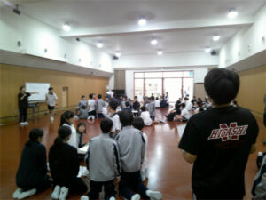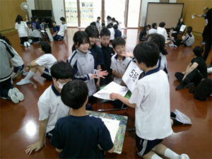 本日、2年生は9月に行われる京都奈良学習にむけた話と、生徒が企画運営するレクリエーションを行いました。初めに、京都奈良学習にむけての話では、校外学習の目的の確認や3日間の行程が話されるとともに、中心となって準備していくプロジェクトメンバーを募ることも伝えられました。レクリエーションでは京都・奈良学習での活動班対抗のゲームを行いました。以下、企画・運営をした生徒の感想です。