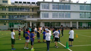 今年度第1回目の陸上クリニックが行われました。小学校5~6年生を対象に、本校陸上競技部の顧問から速く走るための秘訣やトレーニング方法のアドバイスを行いました。最後は恒例の50m走タイムトライアル、ほとんどの生徒が自己ベストを更新し、中には1秒以上速くなった生徒もいました!
