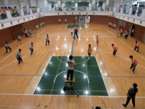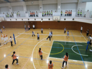 天候に恵まれ、第40回球技大会が行われました。全ての試合がクラス対抗戦で、ABクラスはバレーボール、CDEクラスはポートボールとフリースローが種目です。新年度になって2か月余りですが、クラスの団結力が勝敗に大きく関わります。保健体育の授業や休み時間を中心にして、技術力、チーム力を高めていった成果が発揮され、白熱する試合展開!CDEクラスポートボール決勝、ABクラスバレーボール決勝(男女)は全校生徒で観戦し、大いに盛り上がりました。またABクラスのバレーボールは下級生が上級生に勝利をあげるなど、体育館は歓声に包まれ今年も熱い戦いが繰り広げられました。