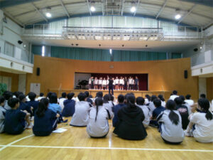 来週本番を迎える合唱コンクールにむけて、2学年で合唱の交歓会を行いました。本番はA組、B組、CDE組に分かれ、それぞれが学年課題曲と自由曲の2曲を歌います。初めこそ緊張した様子は見られましたが、堂々と歌う姿が印象的でした。互いの歌声に良い刺激をもらい、ここからさらに完成度を高めていって欲しいと思います。