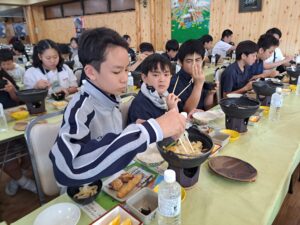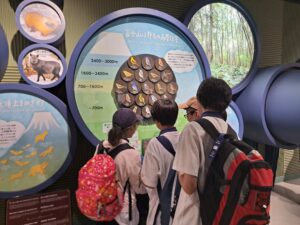 合宿最終日、3日間お世話になった宿舎を出発し、午前中は富士山世界遺産センターへ行きました。世界遺産である富士山について、基本的な情報から視覚的に富士山を体感できるものまで展示があり、良い学びの機会となりました。その後、富士山五合目までバスで上り、昼食。皆で山梨名物ほうとうを味わいました。午後はリニア見学センターへ。実際のリニアの走行が見れるかどうかは、当日現地でしかわからず運頼みでしたが、生徒たちの日頃の行いのおかげか、運よくリニア走行を見ることができました。時速500kmの迫力に皆、大興奮!あっという間に通り過ぎましたが、館内は大盛り上がりでした。2泊3日の合宿で、集団行動や共同生活する上でのマナーを確認するとともに、身辺自立などの生活スキルを高めることができました。また縦割り班活動を通してコミュニケーションを図ったことで先輩・後輩の縦のつながりも深まり、2学期のスポーツ大会など今後の学校生活に活きてくることと思います。