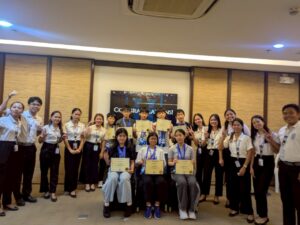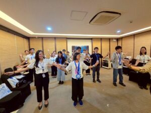 研修もいよいよ終盤。午前中に全てのレッスンを終え、修了式が開かれました。生徒たちは修了証を手にし、前日に講師の先生と一緒に考えたスピーチを披露しました。初めは緊張と不安を見せていた生徒たちが、最後には笑顔で積極的にコミュニケーションを取り合うまでに成長していました。生徒たち自身もその変化を実感しており、成長したことや支えてくれた講師の先生方への感謝をスピーチにして伝えていました。先生方からセブの伝統的なダンスのプレゼントがあり、お返しに生徒たちは日本のソーラン節を披露して、最後は一緒になって踊るなど、思い出に残る修了式になりました。