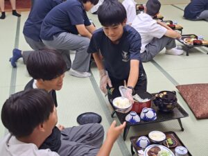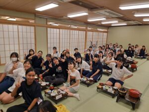 ホテルに到着してから夕食を食べ、お風呂で疲れを癒し、部屋では班のメンバーでカードゲームをしたりテレビを見たりして楽しんでいます。明日AB組は班ごとに事前に決めたルートで、CDE組はクラスごとに、京都市内の寺社仏閣を巡ります。