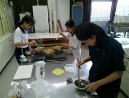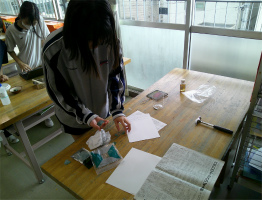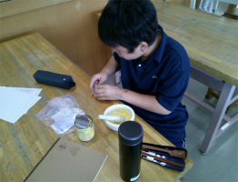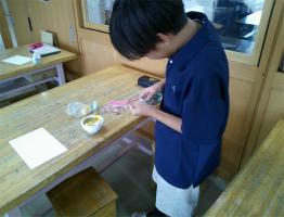 1学年の探究科では、今年5月から4つのゼミに分かれ、興味や関心から「問い」を設定し、オリジナルの「答え」を構築していく探究の基礎や技術を学んでいます。現在は各ゼミで「調査・実験」について学んでいるところです。『絵の具の種類と展開〜身近な素材から絵の具は作れるか〜』をテーマにしたゼミでは、実際に絵の具を作り始めました。思い通りにいかない部分もありますが、そうした結果から新たな問いを見つけ、探究の醍醐味を味わっています。