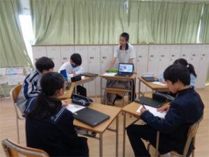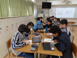 先日は、調べたゴールが異なる生徒同士でグループをつくり、発表し合いました。ゴールごとに取り組む内容が大きく違うことや、よい取り組みに見えても、別の側面では別の課題を生む可能性があることなどに気付くことができました。SDGsの単元を通じて、それぞれが「持続可能とは何か」「本当に社会をよくする取り組みとは何か」を考えることができました。