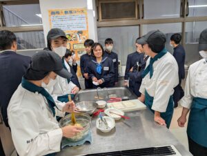 上級校である武蔵野東高等専修学校で2学年CDE組の交流授業が行われました。高等専修学校の3年生が校舎内を案内し、各コースの体験・見学を行っています。コンピュータグラフィックコースでは、先輩たちのタイピングのホームポジションを意識した入力の速さを目の当たりにして感動していたようです。体育コースでは先輩たちが笑顔でダンスを披露してくれたのが印象的で、中学生もそれに合わせ気分よくダンスを楽しみました。調理・製菓コースではスイートポテトを作っていましたがその手際の良さに驚いていました。優しい先輩たちから直接教わり案内してもらったことで、学校の様子がよくわかり、良い経験となりました。