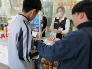 学園祭の劇を通して、ゆっくり、はっきり、相手に伝わる声で話すことを練習してきましたが、初対面の方にお話しすることに、とても緊張してしまった生徒も多くいたようで、うまく伝わらなかったケースもありました。緊張のあまり支払いの時にあわててしまったり、普段はきちんと言える「ありがとうございます」を忘れてしまったり… これからの課題も多く見つかった体験授業でした。