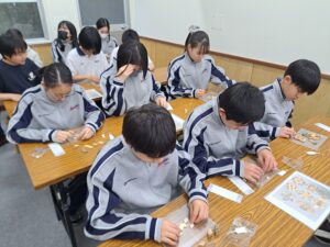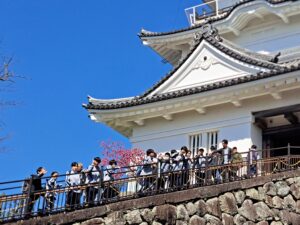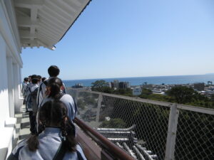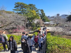 一日目の今日は、朝体育館に集合して大型バスで箱根へ出発。まず向かったのは小田原城です。城の中、また資料館の展示を見て歴史を学び、天守閣を上りました。天候に恵まれ、辺りは桜もきれいに咲いており、頂上からの眺めは格別でした!昼食は「鈴廣かまぼこ」へ。小田原名物の練り物など美味しくいただきました。午後は畑宿へ移動し、寄木細工体験。30ピースの木材を組み合わせ、それぞれがオリジナルのコースターを制作しました。