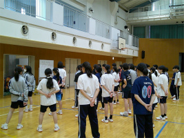 本日、AB組合同でバレーボールに取り組みました。声を掛け合いながら協力する姿が見られ、5月の球技大会に向けて意欲の高まりが感じられました。学級や学年の絆をより一層深めながら、球技大会での活躍にも期待しています。