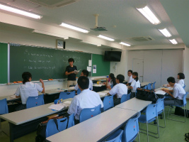3年生は全17日の夏期講習を行いました。午前、午後合わせて計4時間半を10名程度の少人数グループで学習します。グループによって進度は違いますが、各教科単元別に復習し、基礎を固めた上で入試問題演習に取り組みました。課題は毎日3時間分。受験生として気を引き締めて毎日を過ごす生徒たちですが、お昼には輪を作って友人と和気あいあいとお弁当を食べるなど、メリハリをつけて過ごし、充実した夏となりました。