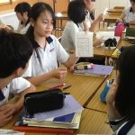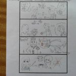 2年生までに中学校の文法を既習した3年生は、受験も意識して多くの長文読解に取り組んでいます。英文を読んで、ただ問題を解くのではなく、「読む」から、「書く」「話す」の活動にも繋げられるよう授業を展開しています。先日の授業では、1つのストーリーを4つのパートに分け、4コマ漫画を作成しました。それぞれが1コマを担当し、ストーリーの要約を英語で班員に伝え、絵で表します。自分の知っている文法、語彙を使って、ストーリーを組み立てる作業は生徒たちにとってはチャレンジングで、意欲的に取り組んでいました。