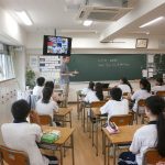 国際理解の学習を進めている2年生の生命科では、イギリス出身のALTマイケル先生が特別授業を行いました。日本で生活を始めて、先生が感じた外国との違いについて英語で話を聞く中で、今までとは違った視点で日本の文化を考えることができました。ベジタリアンの人々に対する対応など、身近なところにある文化の違いには驚いたようです。英語で理解し、意見を書く大変さを感じながらも、日本と外国の文化をより深く理解した時間となりました。
