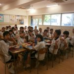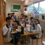 間近に迫ったスポーツ大会に向けて、チームごとにグループを分けて学年給食を行いました。本番が近づくにつれて、全校競技の縄跳びや陸上種目などの練習に、さらに勢いが増しています。また、学年競技の2人3脚リレーやリングリレーでは、AB組とCDE組の生徒とがペアになって競い合います。普段の練習以外にも、こういった形でコミュニケーションをとることでより一層チームワークを高め、当日までの練習に励んでいきます!