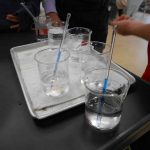 <理科実験>ガラス管細工を行い、中に塩化コバルト溶液を入れ、温度によって色の変わる不思議なマドラーを作りました。