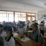 3年生の生命科では2学期に「死生観」をテーマに学習を進めています。今回は東日本大震災を体験した中学生たちが「命」と向き合い、心の内に抱え込んだ気持ちを伝えあう取り組みについて映像を通して学んでいきました。涙ながらに体験を吐露する友人に同級生が言葉をかけあう命の授業の様子を見て、生徒たちからは“みんな大切な人を亡くして、目の前で死を経験している。命に向き合うことは本当につらいし、あの時のことを思い出したくないと思う。でも大切だということを学んだ。”“目の前で大切な命が亡くなるところをみて、前向きに生きている姿、本当にすごいと思います。家族、友達がいることのありがたさ。もっと大切にしなければいけないと思いました。”など、想像も及ばない程つらい思いをした同年代の気持ちを推し量りながら、自分の立場に置き換えて考えようとする感想が多く見られました。