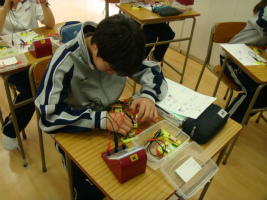 2年生理科は「天気の世界」を終え、「電気の世界」に入りました。本校では一人に一セットずつ電流回路セットが用意されているので、全員が自分で回路を作ります。今日は、直流回路の部分電圧と全体電圧の関係を確かめる実験を行いました。電圧計は初めて使うので最初戸惑う生徒もいましたが、全員測定を行い、結果を確かめることが出来ました。