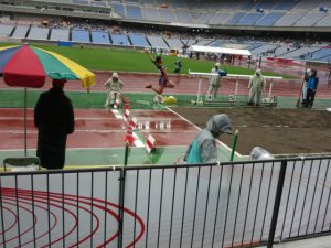 第48回全国ジュニアオリンピック陸上競技選手権大会が10月27日(金)~29日(日)まで横浜NISSANスタジアムで行われました(日本陸連主催の中学生全国大会)。台風の影響が強く、低温、雨、向かい風が吹く、記録の出づらい条件でしたが、それぞれが練習の成果を発揮し頑張ってくれました。その中で走幅跳に出場した2年伊藤さんが予選を勝ち抜き、決勝では6位から2位にジャンプアップし入賞を決めました。また1年東さんは都道府県対抗リレーの東京都代表として1走を走り、予選、準決勝、決勝と力強い走りで5位入賞に貢献してくれました。今大会では日本選手権リレーも兼ねていて、日本を代表する桐生選手や多田選手らも出場しており、同じ空気感のある場所で共に練習したことで刺激を受けたようです。山縣選手から表彰を受けたことも良い思い出になり、来年への更なる飛躍への意識改革にもつながったようです。