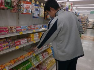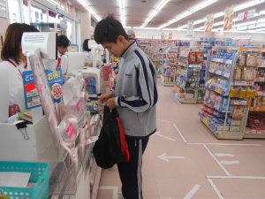 今回は各クラスに分かれて別々のドラッグストアへの買い物体験です。クラス別で行ったことで、ゆっくり焦らず自分たちのペースで買い物に集中することができました。同じメーカーの商品でも色々な種類があり、比較検討するスキルがポイントになってきています。生徒によってレジでの支払い方法は様々でしたが、日々の家庭での買い物や学習の成果を発揮できた生徒がたくさんいました。