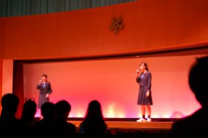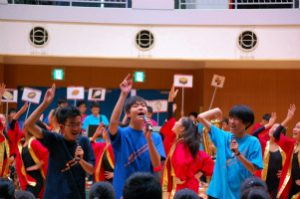 創立記念式典の後は、学園祭実行委員会の企画運営による一大パフォーマンス「オープニングステージ」で盛り上がりました。これこそ生徒たちによる自分たちのための企画で、歌あり、踊りあり、楽器演奏とダンスコラボレーションありと、大いに楽しんだようです。一部は12日(日)の有志ステージでもご覧頂けます。