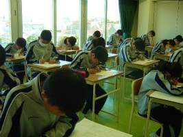 2学期総合テストが実施されました。中間テストの後、全員が各教科に対する自己評価を行い、今回のテストに備えてきました。その成果を発揮できた人もいれば、まだ十分でない人もいると思います。さらに自己分析をしっかり行い、2学期のまとめに結び付けていきます。画像は2ABと3CDEの様子です。